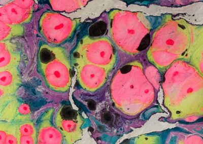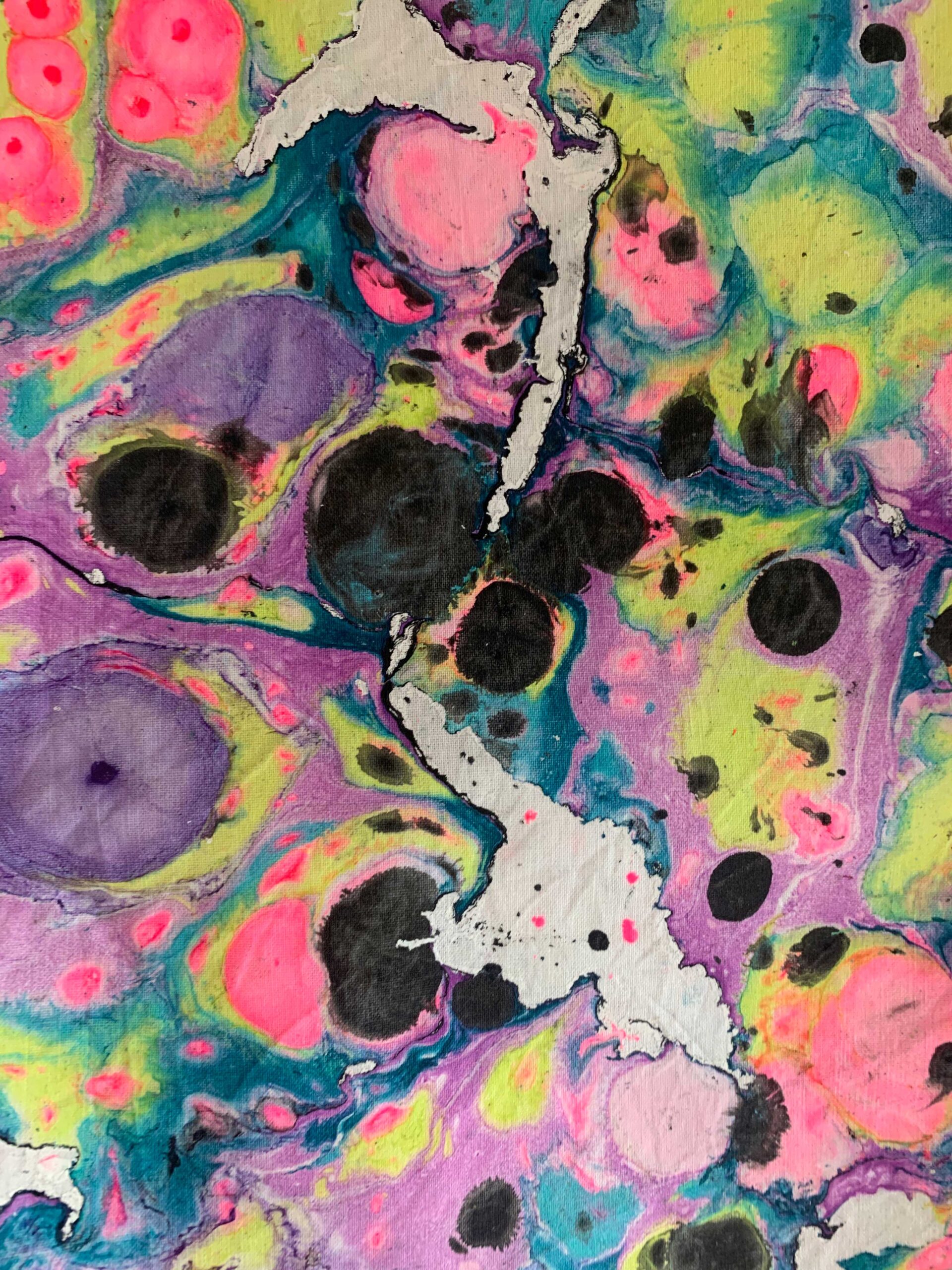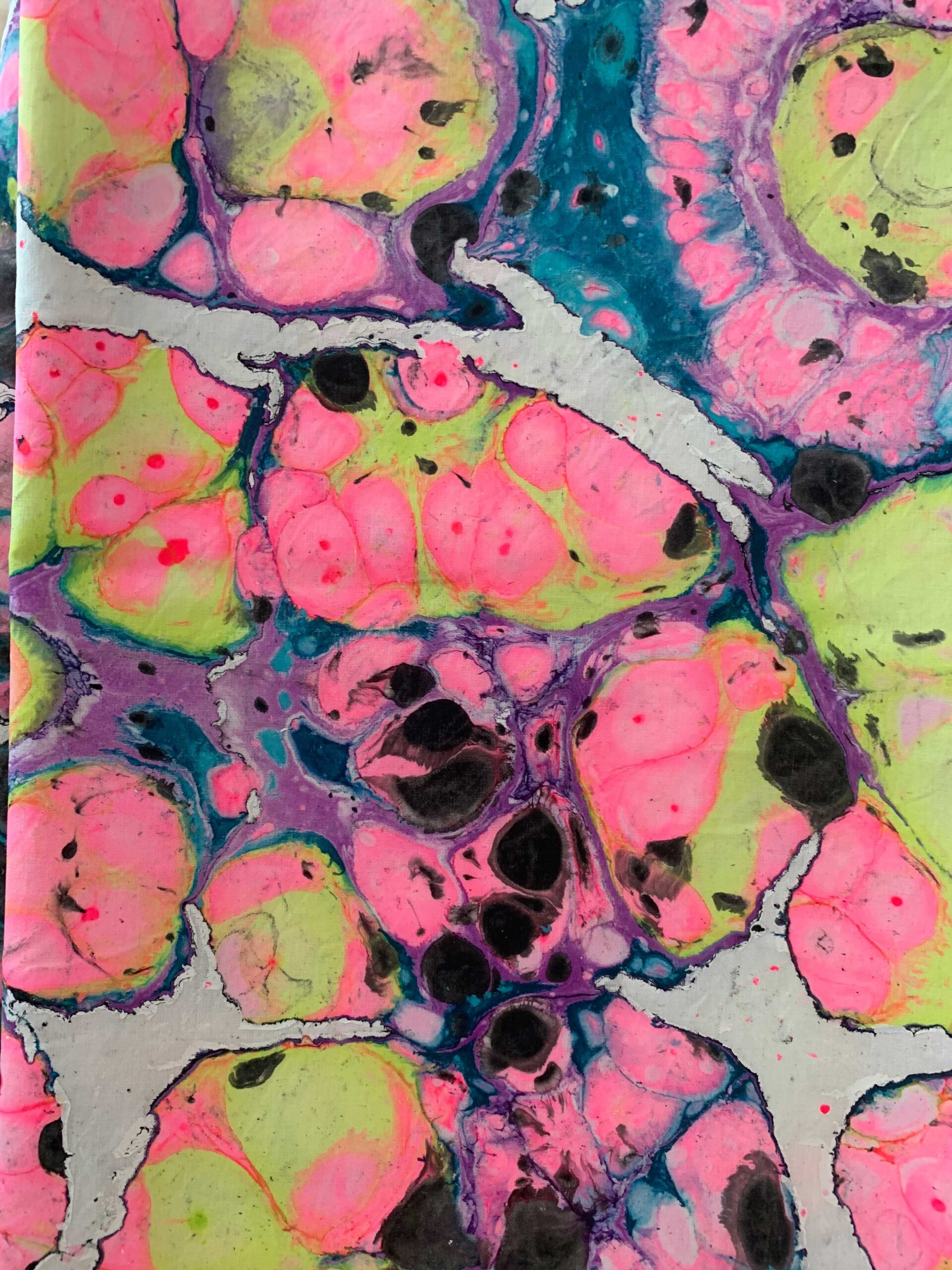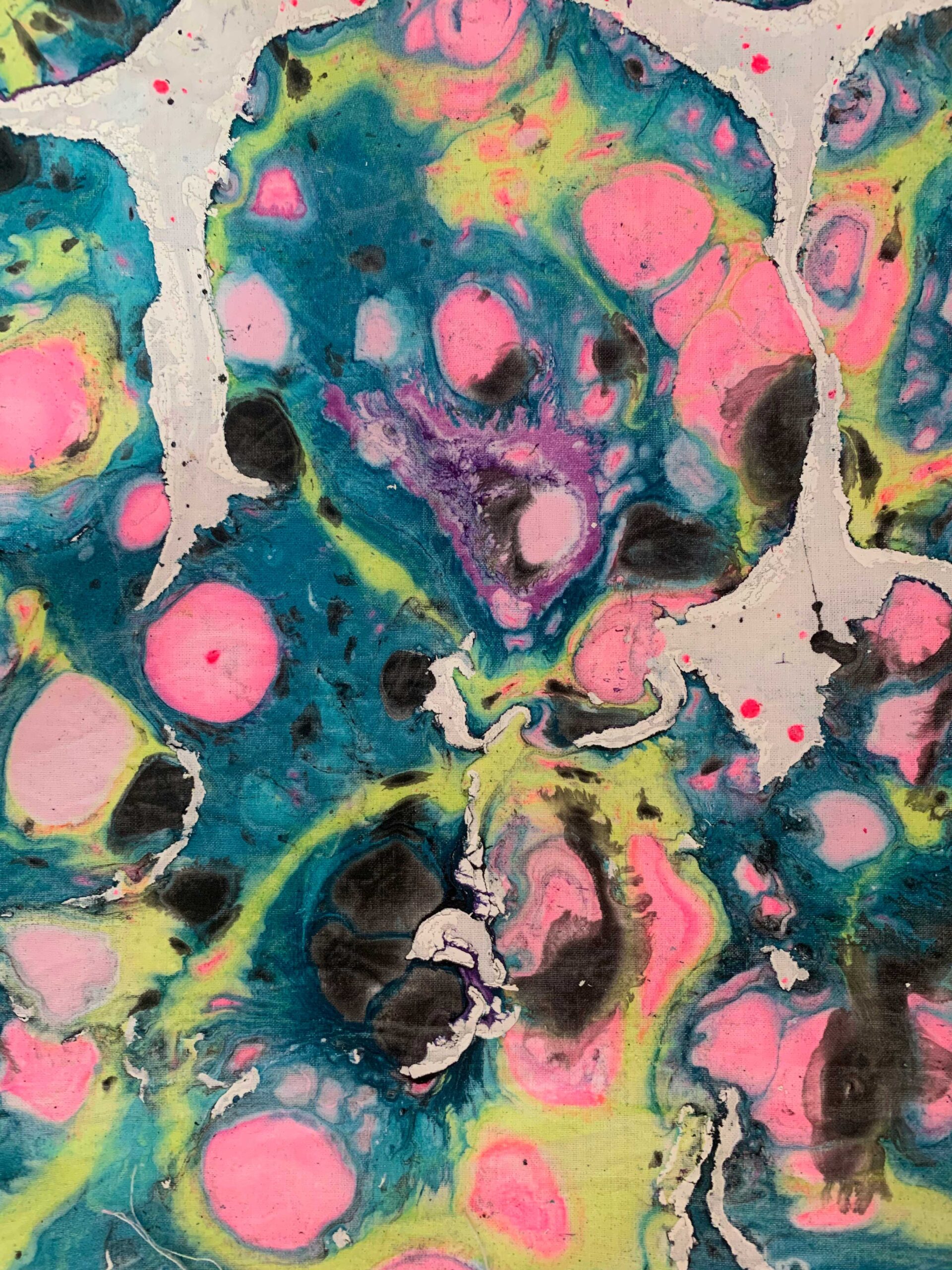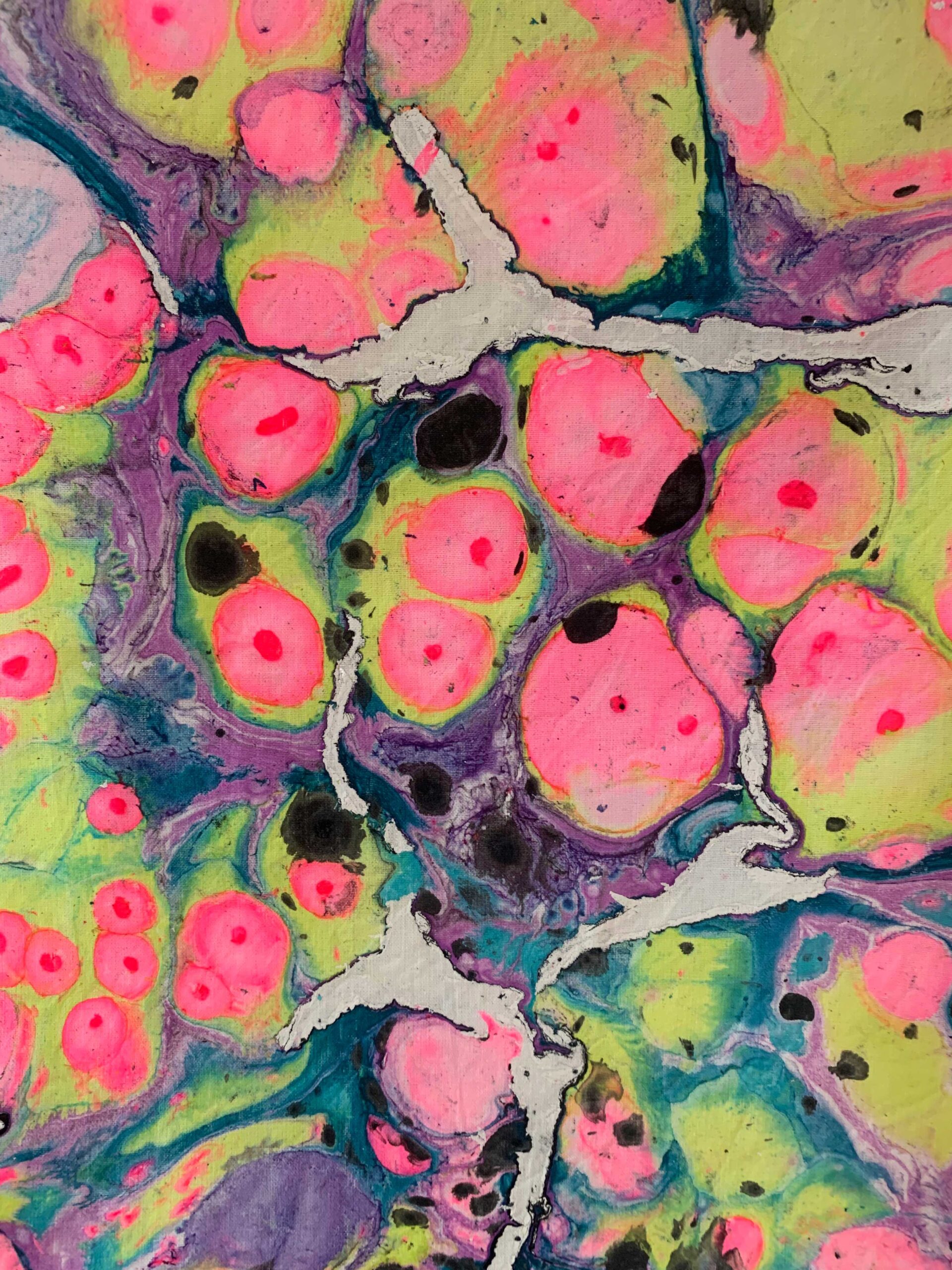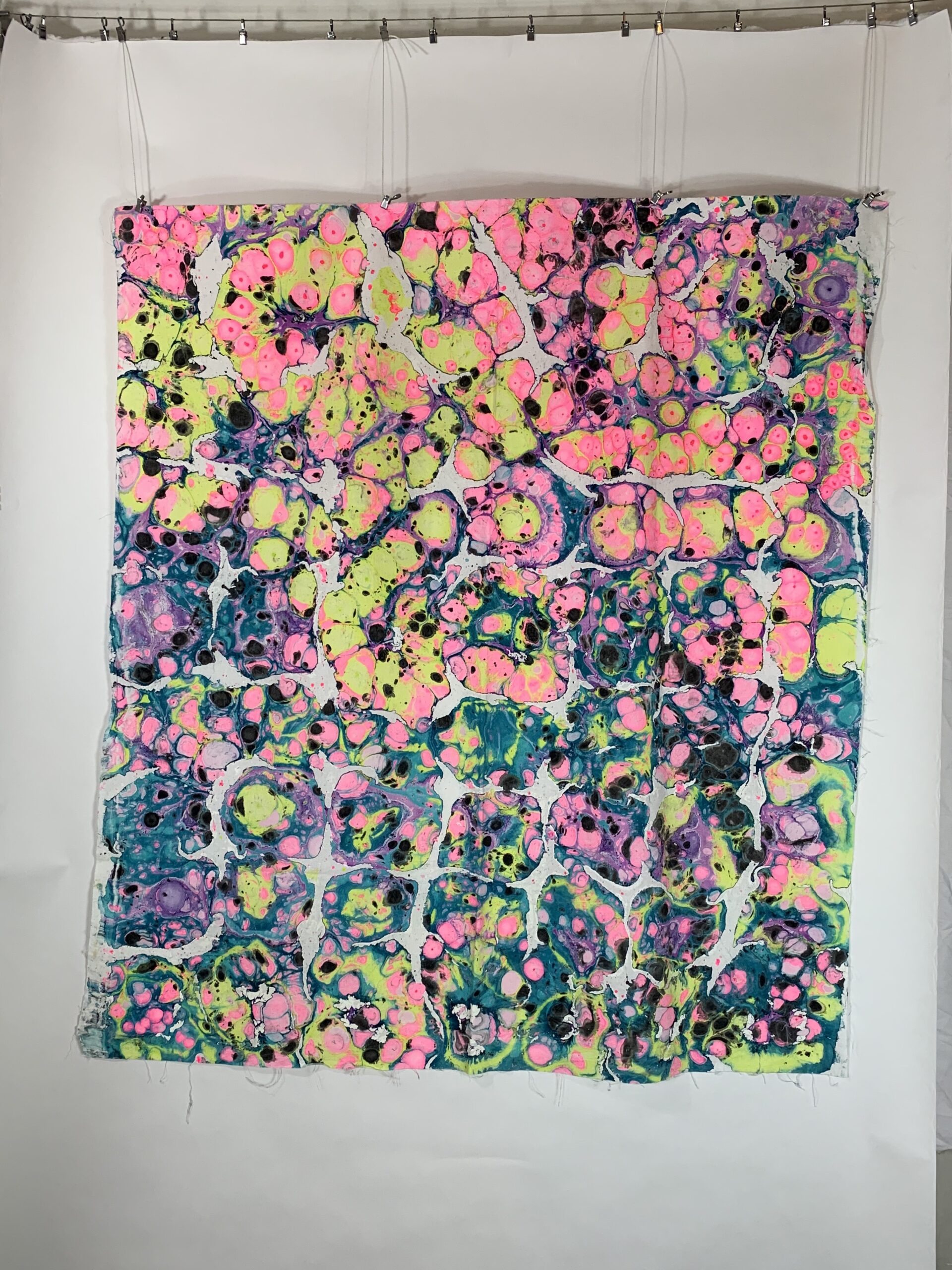 Each marbled textile is the result of a single interaction between color, surface, and moment. Once lifted from the bath, it cannot be recreated. This piece exists as a record of that exact exchange.