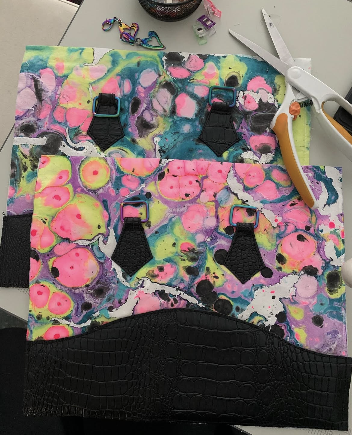 Hot pink and acid green were introduced into the bath as dominant forces, while black was used more sparingly, not as a primary color, but as a disruptor. Instead of blending, it created tension points, forcing the surrounding color to separate, compress, and reform into cellular structures. What emerged was not a controlled pattern, but a reaction.
