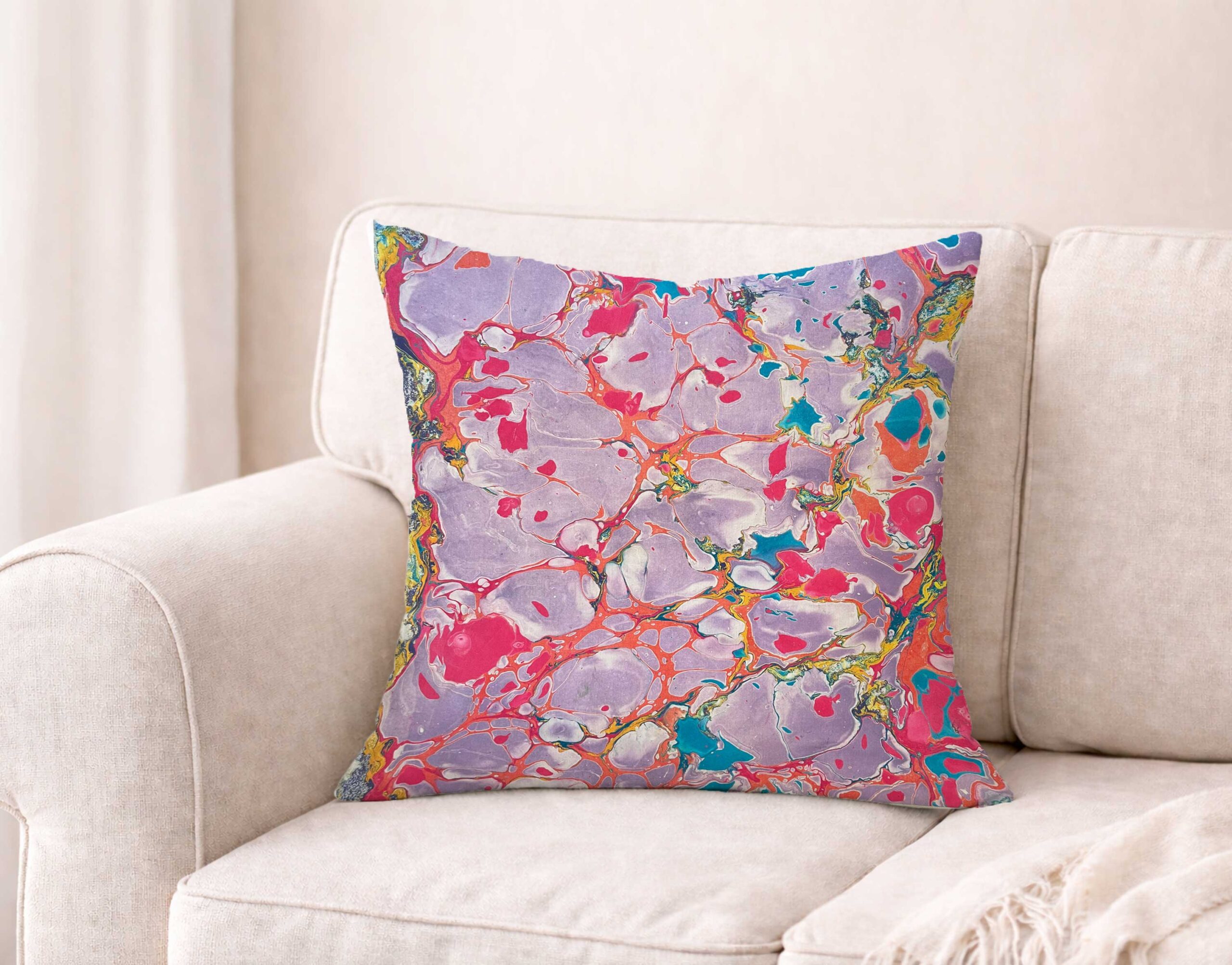 What you see here is not a print or a repeat pattern. Produced in small batches from larger marbled sheets, it is a captured moment in time. One design per canvas and never repeatable.