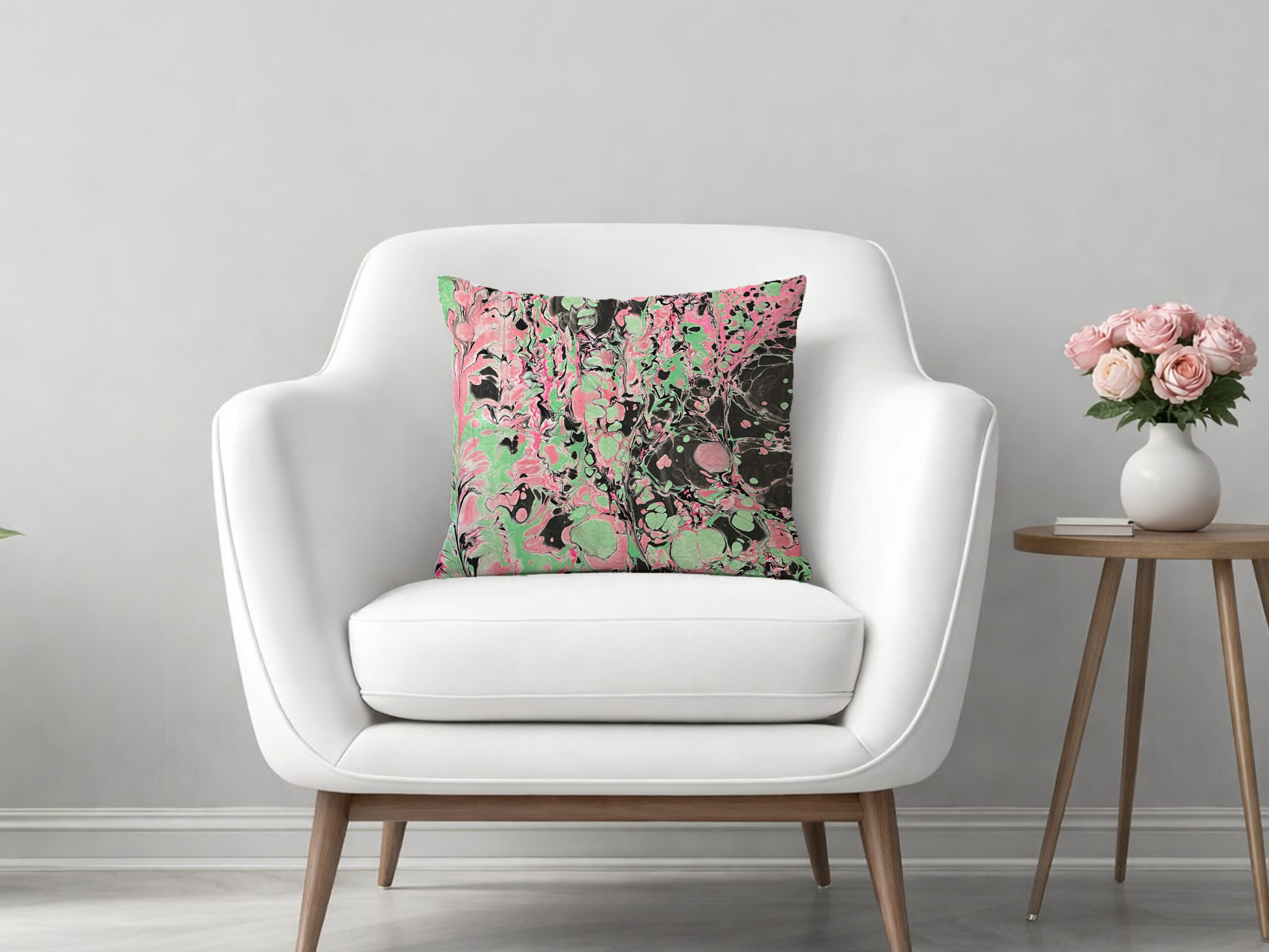 What you see here is not a print or a repeat pattern. Produced in small batches from larger marbled sheets, it is a captured moment in time. One design per canvas and never repeatable.