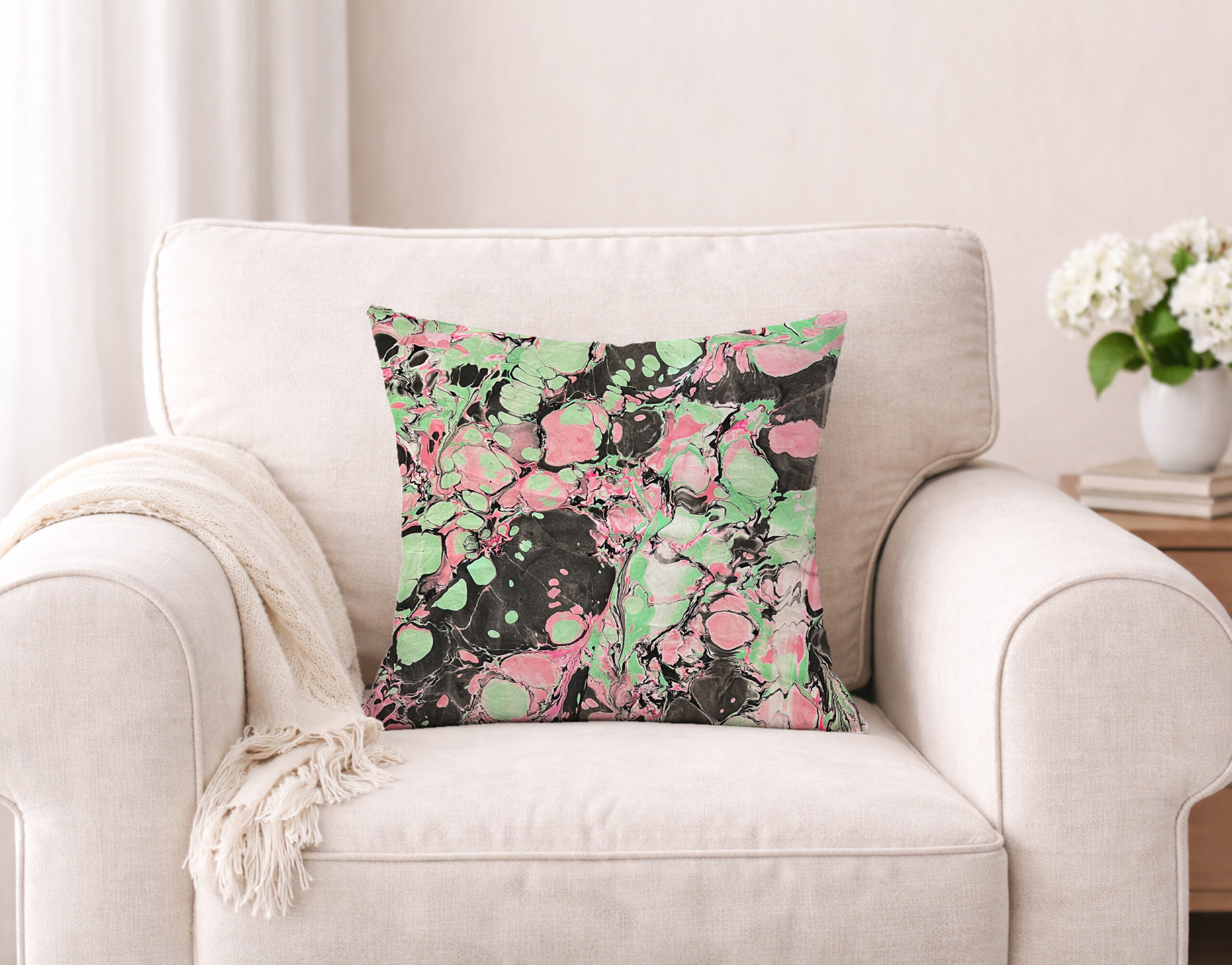 Color Riot IV– No. 03 – Water Marbled Art Pillow – 18 x 18