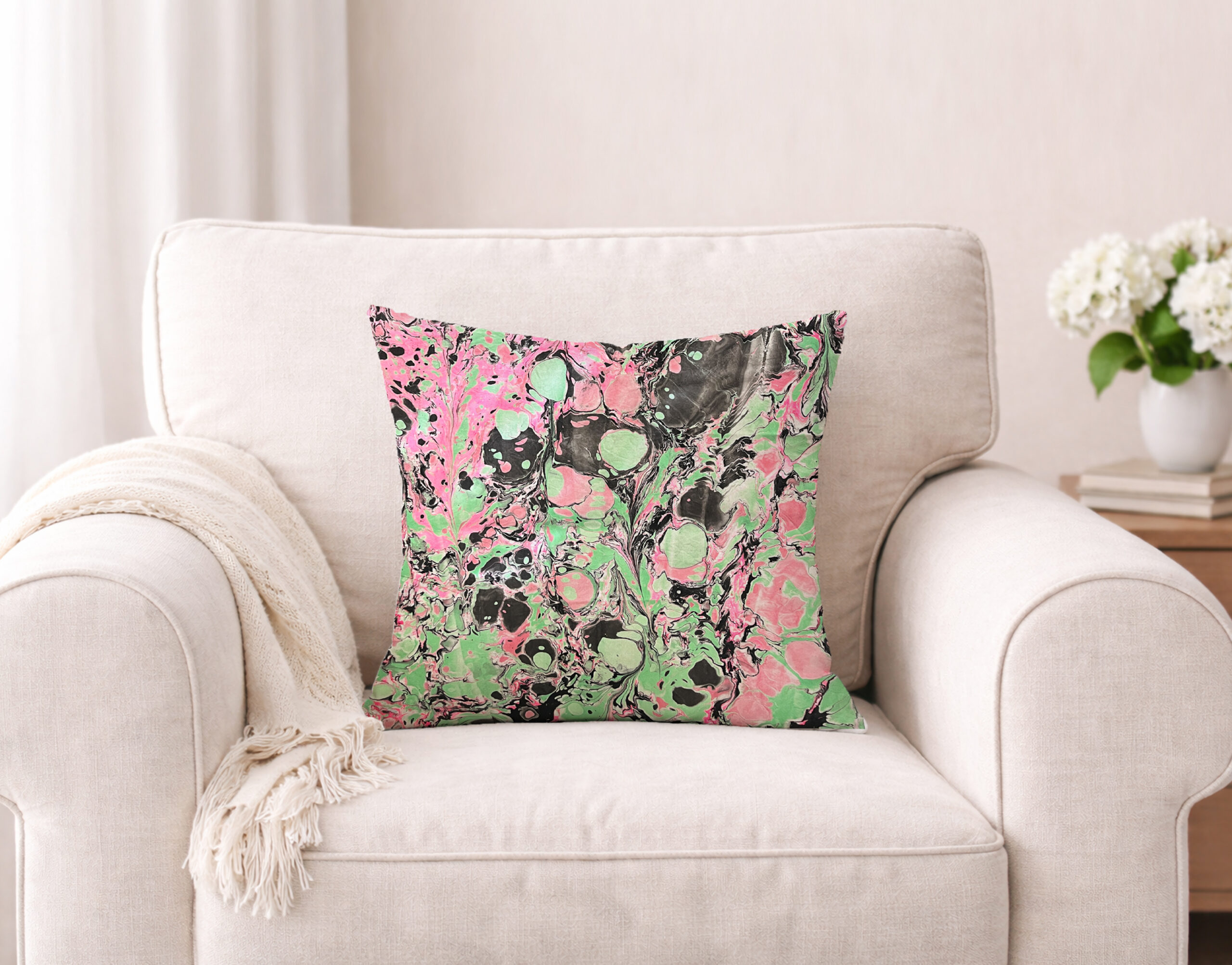 Color Riot IV– No. 04 – Water Marbled Art Pillow – 18 x 18