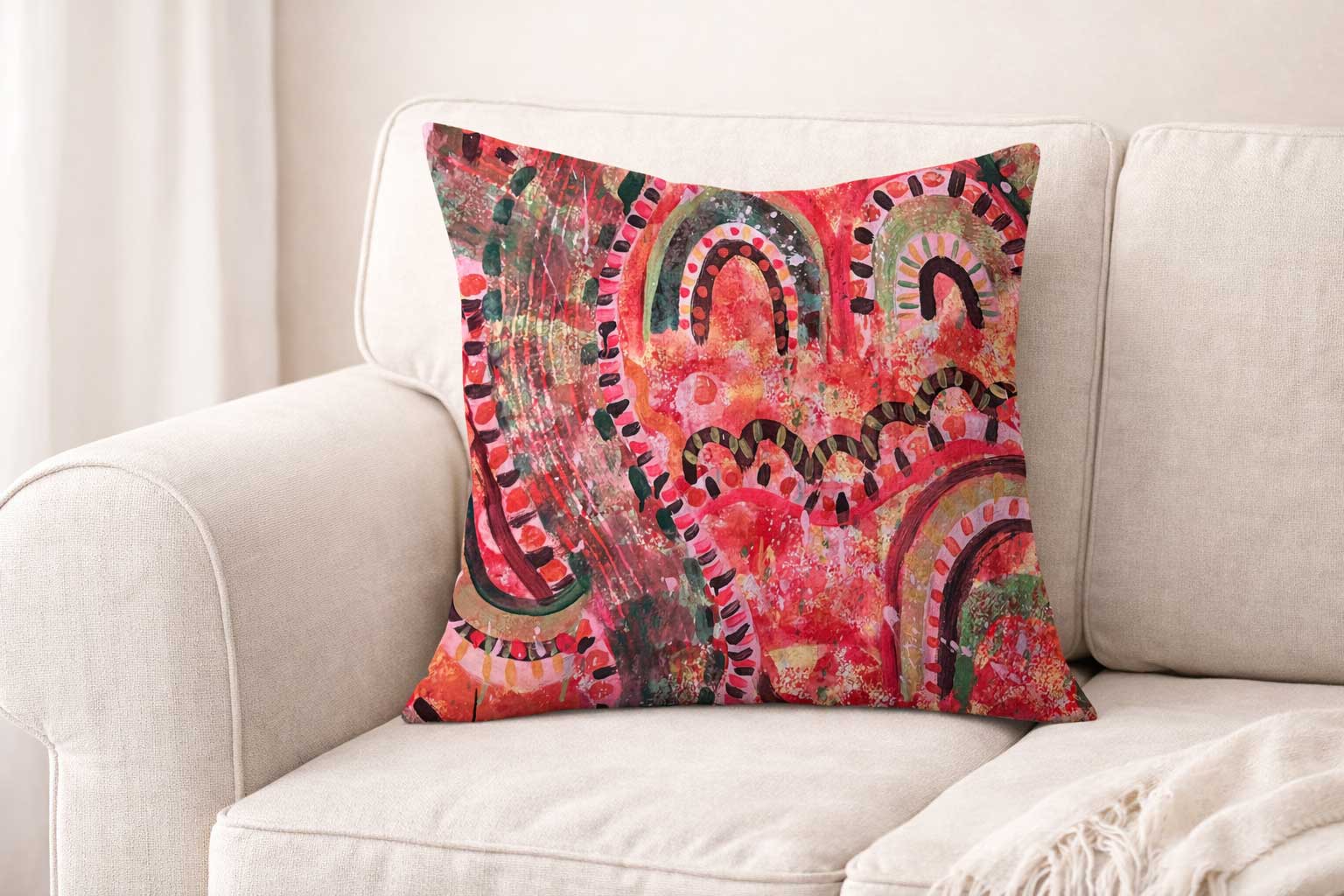 Hand Painted Textile Art Pillow | 22 × 22 Luxury Decorative Pillow