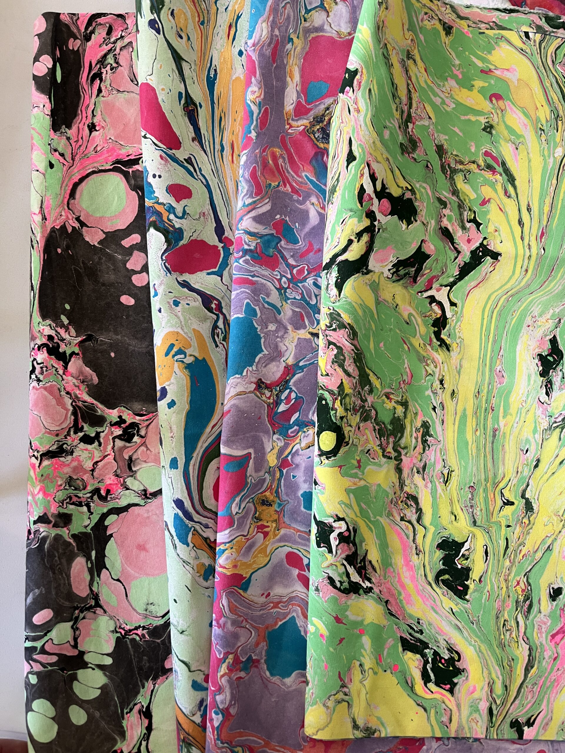 You can come with a color palette, reference, or simply a feeling you want to capture. From there, I develop a series of marbled studies, refining the balance between color, movement, and structure.